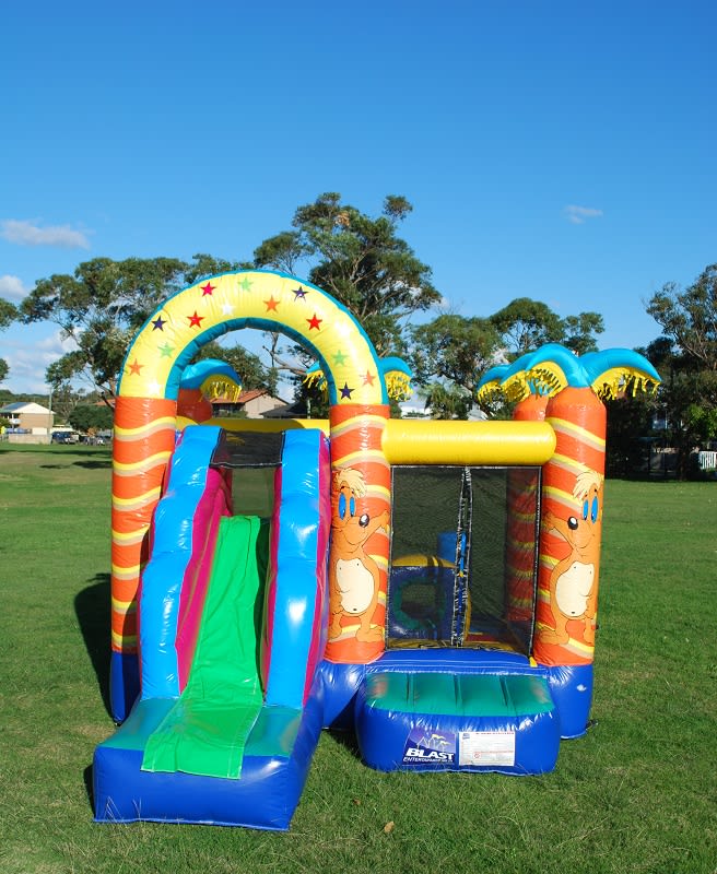 Bring the party to your next event with our Tropical Obstacle & Slide. This 4 x 4m tropical themed obstacle and slide unit combines bright visuals with active play. Perfect for birthday parties, community events, and school fetes. Book reliable jumping castle hire Sydney and make your day unforgettable.