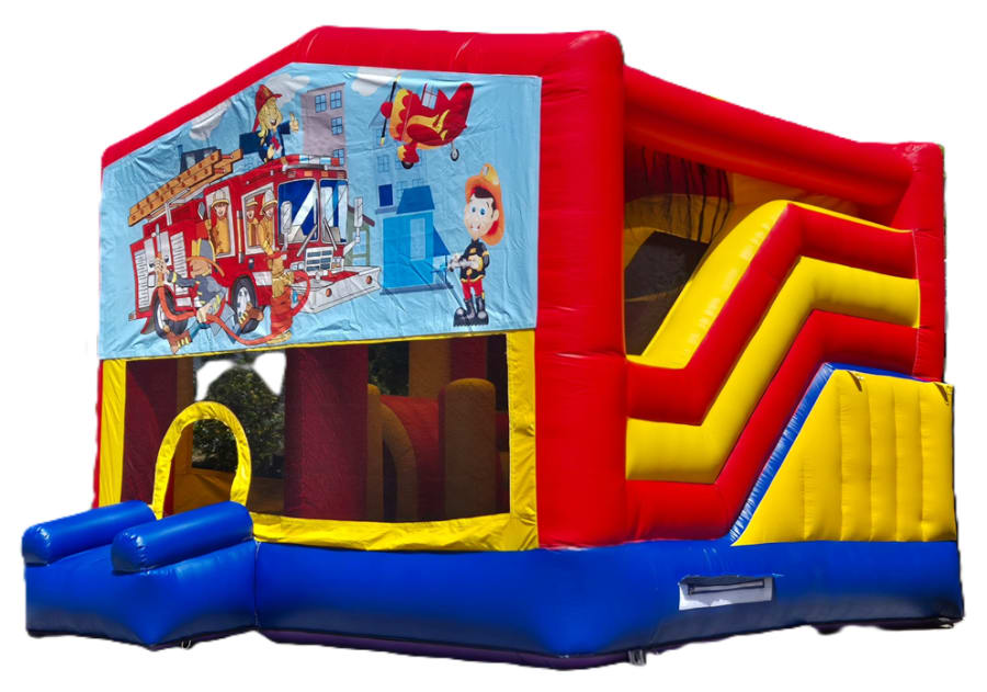 Jumping Castle Hire 5x5 Fireman Obstacle Slide in Sydney delivers a fiery mix of bounce, slide and active play for kids. This 5x5m fireman-themed jumping castle features an internal obstacle course, a fast slide, a basketball hoop and a rain/shade cover. It's ideal for birthdays, community events, school fun days and family gatherings. Fast setup. Safe design. Big smiles. π