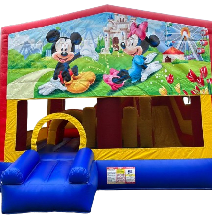 Bring classic Disney fun to your next event with the 5x5 π Mickey & Minnie Obstacle Slide. This 5x5m jumping castle includes a slide, inflatable obstacles, a basketball hoop and a rain/shade cover. Perfect for birthday parties, community events and family gatherings. Jumping Castle Hire 5x5 π Mickey & Minnie Obstacle Slide in Sydney.