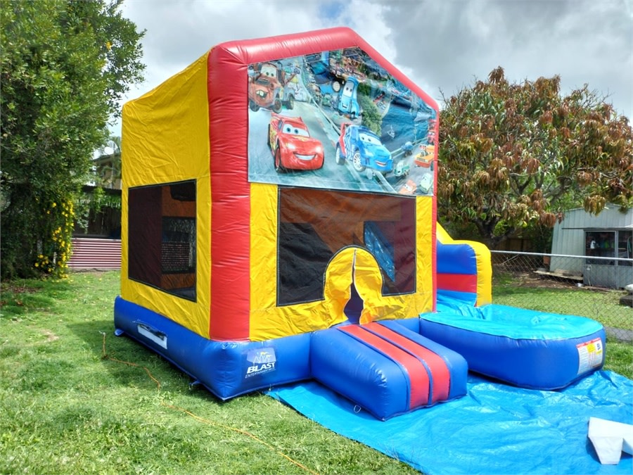 Looking for Jumping Castle Hire 4x5 Slide Cars Theme in Sydney? This Cars-themed 4x5m jumping castle is ideal for kids' parties, school events and backyard fun. It features a big jumping area, an inflatable slide, a basketball hoop and a rain/shade cover. Safe. Bright. Fast to set up. π